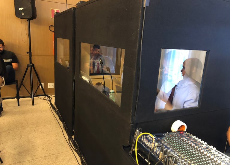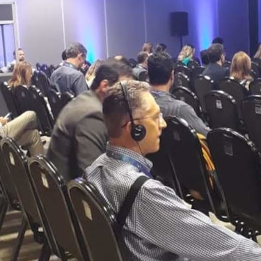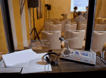 We handle booths, headsets, receivers, and streaming links so everyone hears in their language—on site and online.